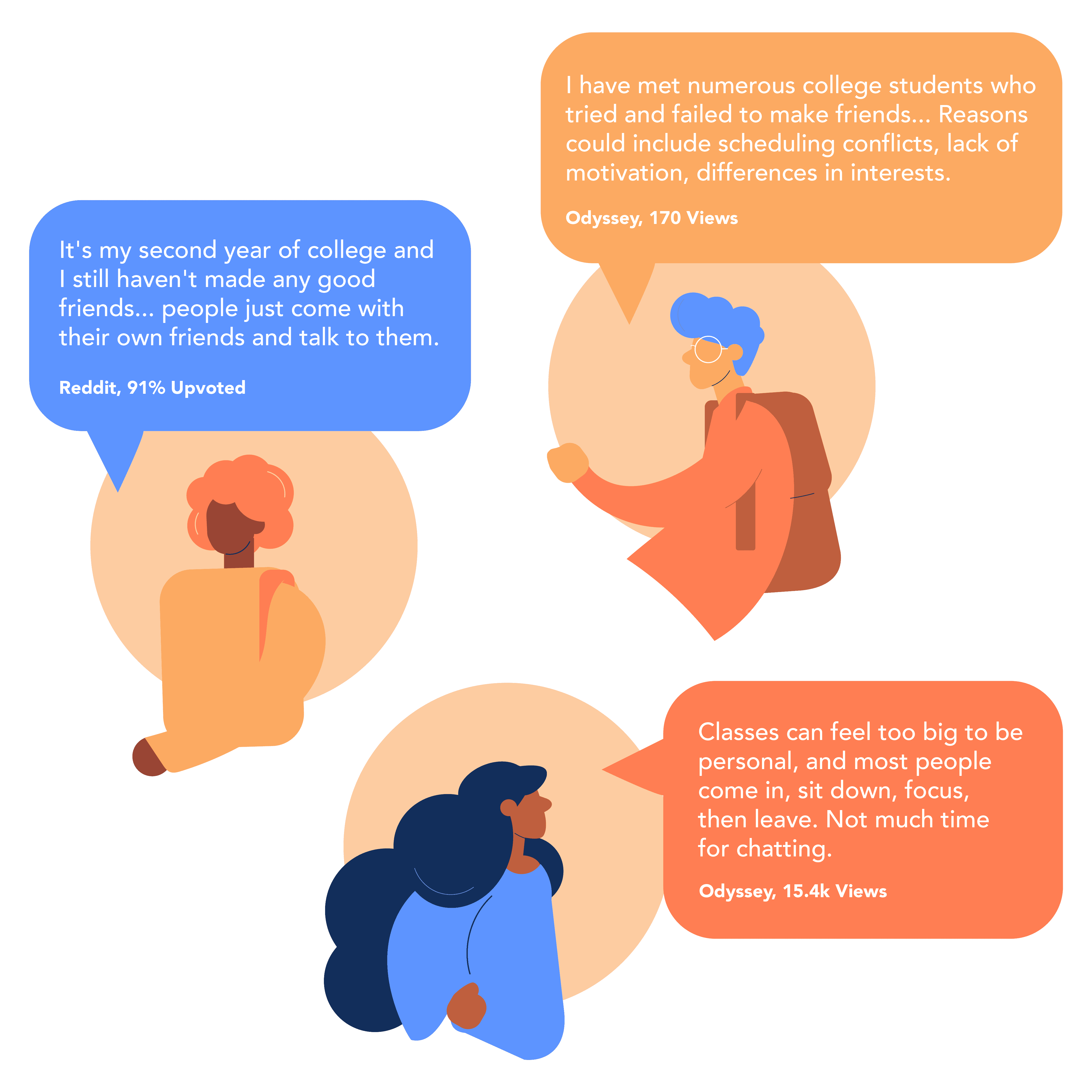 A deep dive into online communities revealed that students have three common frustrations: feeling isolated in larger classrooms, not knowing who’s open to making new friends, and a difference in interests.