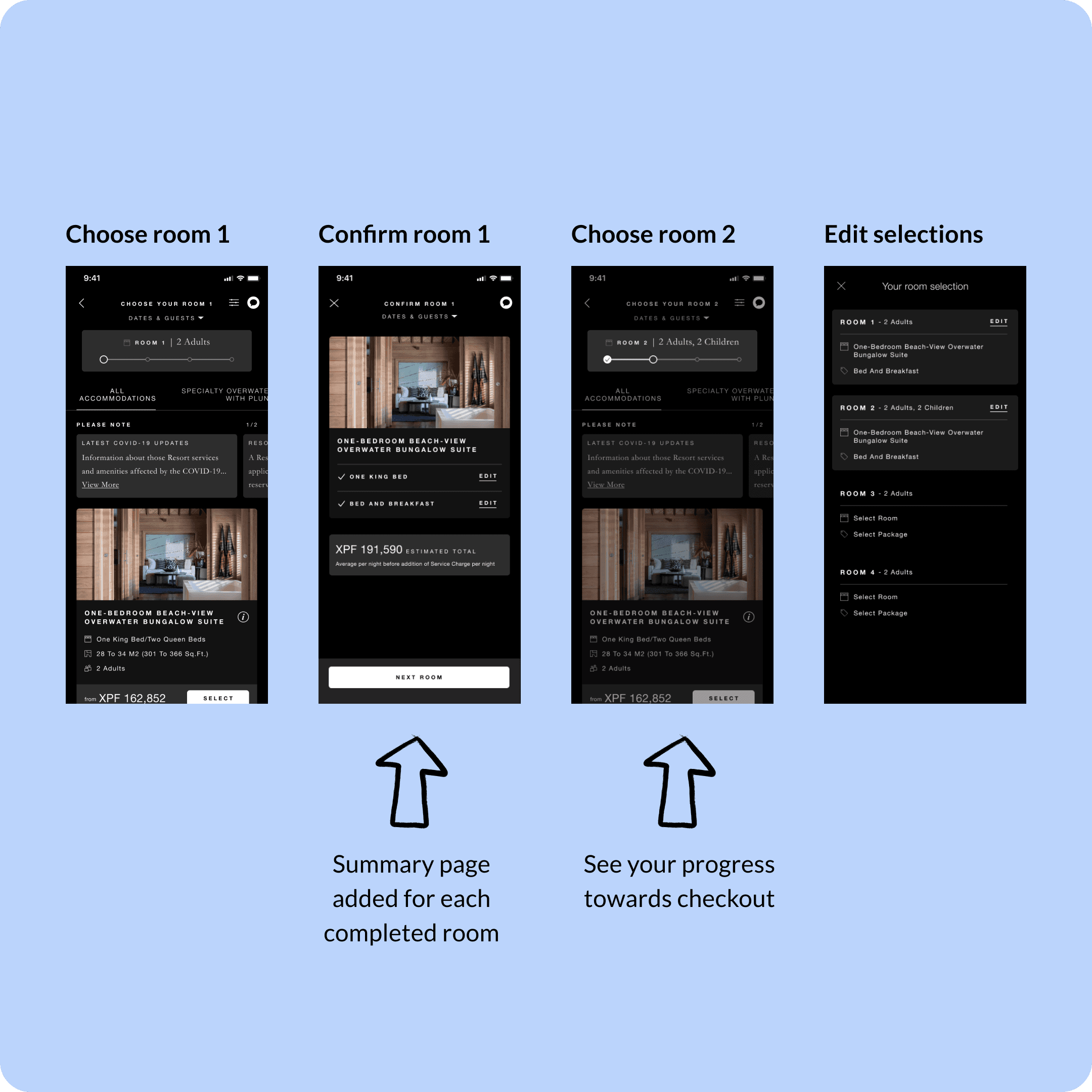Second—showing a summary page each time the user completed their selections for one of the rooms, rather than only before checkout.