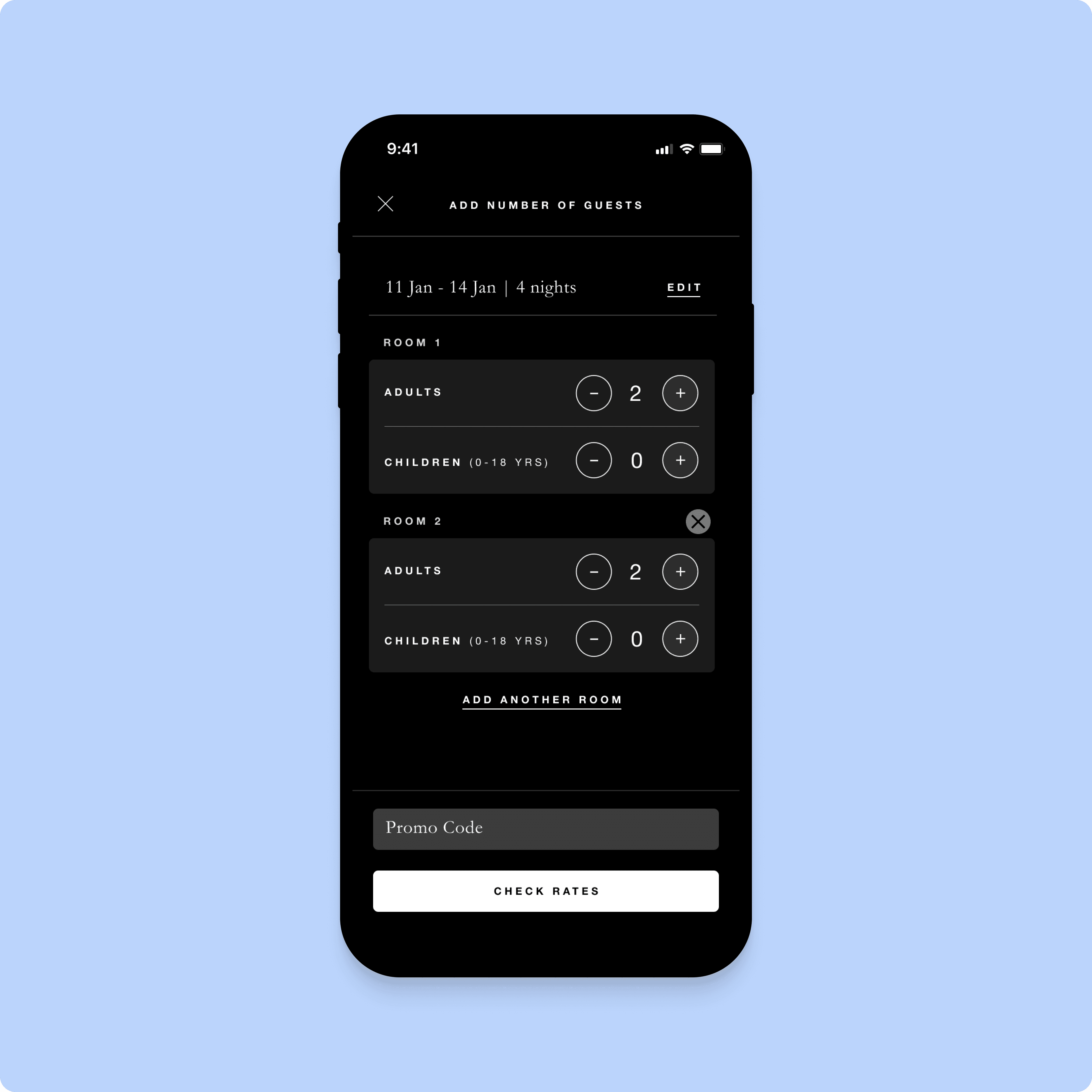 One major issue we identified during the redesign process was a lack of clarity when it came to booking multiple rooms. With so many ways to customize, users could have trouble tracking what options they selected for each room and their progress to checkout. How can we help users stay oriented, feel in control, and complete their booking with confidence?